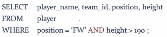-FW 포지션 선수 중 키가 190보다 큰 선수정보를 조회하고자 한다면 (두 개의 교집합을 구할 때)