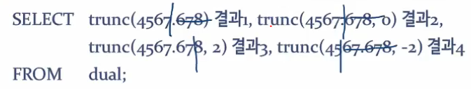 | TRUNC | 지정된 자리에서 버림 수행 |