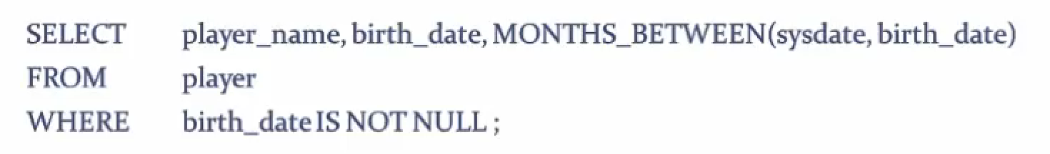- 선수들 이름, 생일 날짜, 생일 날짜에서 년도, 월, 일자만 추출해서 조회