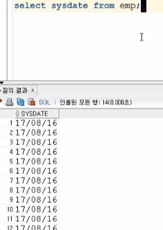 emp 줄마다 (오늘 날짜,시간)을 찍어주는데, 테이블의 데이터개수만큼 찍어준다.