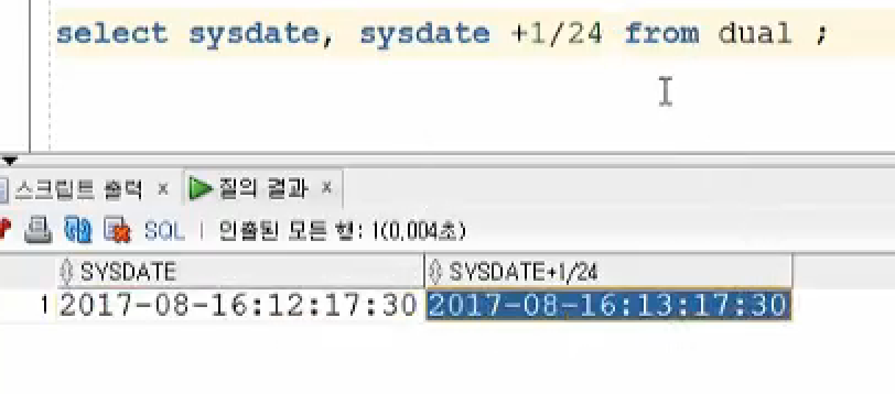 SYSDATE + 1/24/60 /60 : 1초만 더해