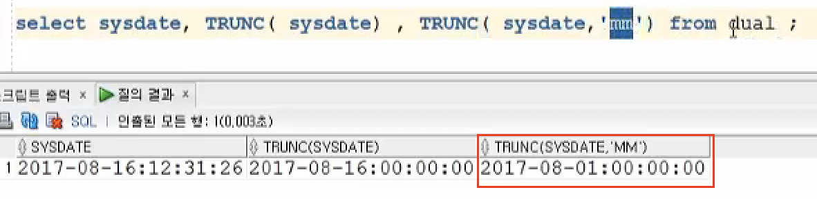 | TRUNC | 날짜를 년, 월, 단위로 버림 |